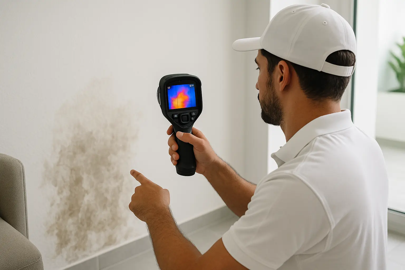 – تستخدم هذه التقنية لاكتشاف التغيرات في درجات الحرارة على سطح الجدران والأسقف. التسربات المائية تسبب تغيرًا في درجات الحرارة، مما يمكن أن يتم رصده بواسطة الكاميرات الحرارية.